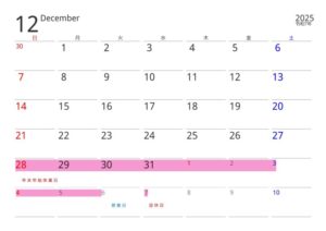 ◆年末年始休業日◆ ※ピンクが休業日